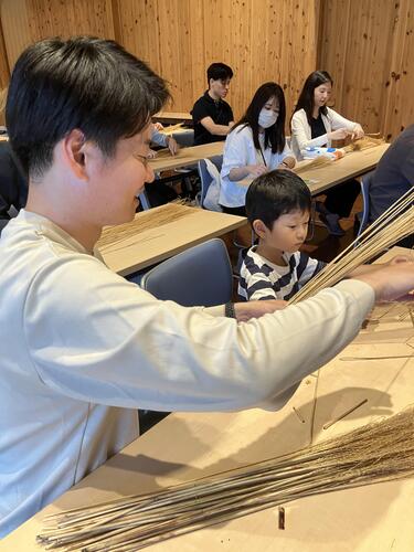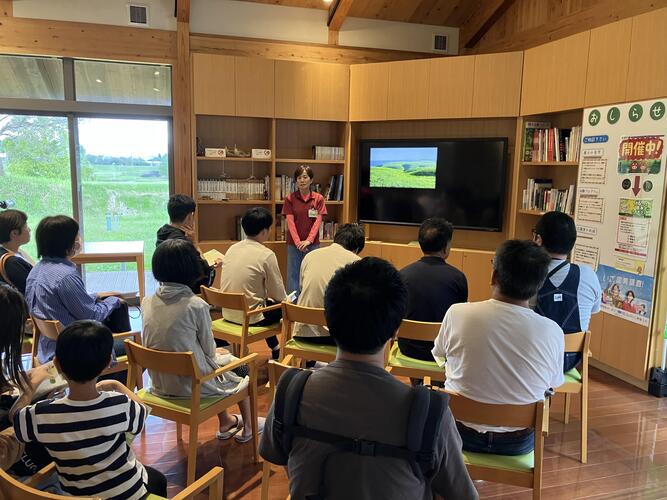 午後からは阿蘇へ移動し阿蘇草原保全センターにて熊本・阿蘇の草原がいかに大切か、また草原を守るための活動をビデオとジオラマを使い学んでいただきました。学びの後は阿蘇の草原をつかったミニほうきづくり体験をしていただきました。- 協力団体