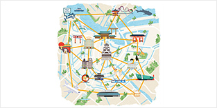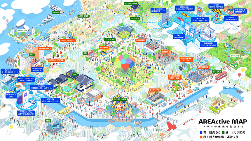 エリアソリューション事業は、地域の自治体や観光事業者と協力しながら、地域やエリアの持続的な発展を目指して、継続的な「交流」を生む仕組みづくりに取り組んでいます。