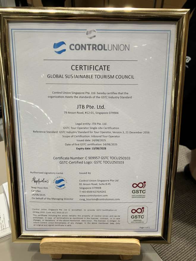 JTB Pte Ltd(シンガポール)が取得した