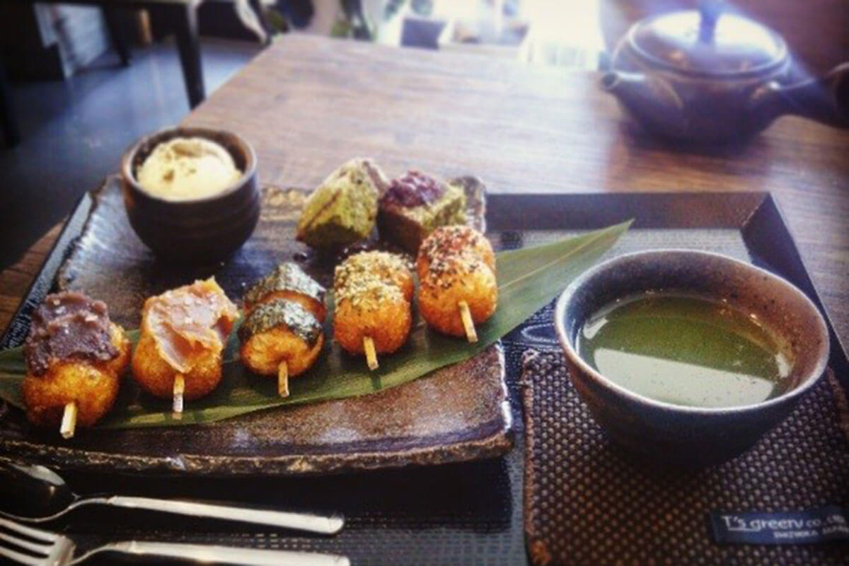 T’s green(ティーズグリーン)では、揚げだんごの食べ比べメニューを楽しめる。