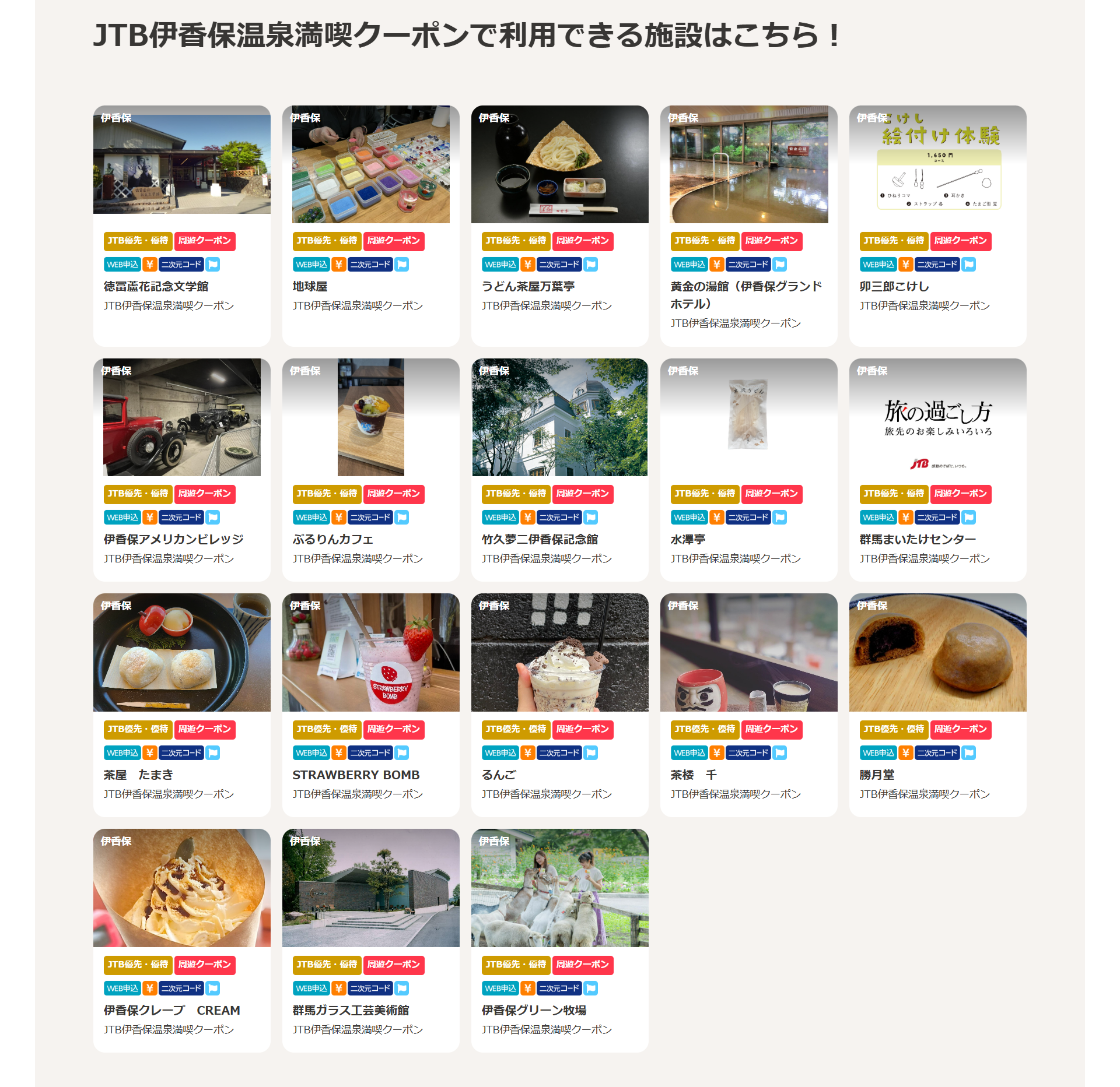 上田:地域やクーポンによって料金は異なりますが、伊香保温泉の場合は1,000円で販売しています。これさえあれば、温泉や観光施設など18か所(※2025年9月時点)すべてで1回ずつ使用できるんです。もし全ての施設を回ることができたら、おそらく2万円相当になるのではないでしょうか。実際には全部回りきるのは難しいのですが、平均すると5〜6施設を回る方が多く、それでもすごくお得な内容になっています。