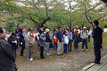 肌寒い中でしたが、54名の参加者はグループに分かれ、それぞれ真面目に清掃活動に取り組まれました。短時間のうちに敷地内の落ち葉がなくなってしまい、清掃を予定時間より早めに終了する状況でした。ご参加の皆様をはじめ、観光公社、鶴ケ城会館の皆様には、この場をお借りして御礼申し上げます。