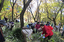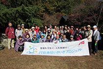 恵まれた天候のもと、現地ではまず、地元の各団体や保全団体によるエコロジー活動に関する説明を拝受。その後、参加者の皆様と地元の方々が交流しながら、下草刈り、間伐作業、さらに紅葉や植物観察も行いました。参加者、スタッフともども、体験を通してエコロジー活動への理解を深め、当日募った寄付金をトラスト団体への事業協力金(寄付金)として貢献することもできました。